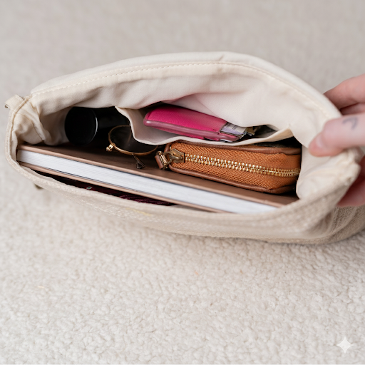 Secure Closure: A hidden magnetic snap closure to keep your belongings safe.